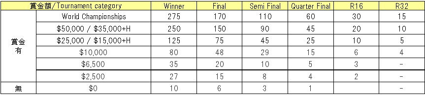 - 国際大会におけるITFポイントは、年間でポイントが上位となる8大会分の合計となる。