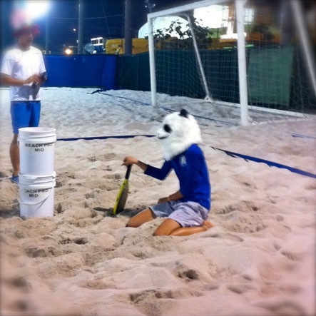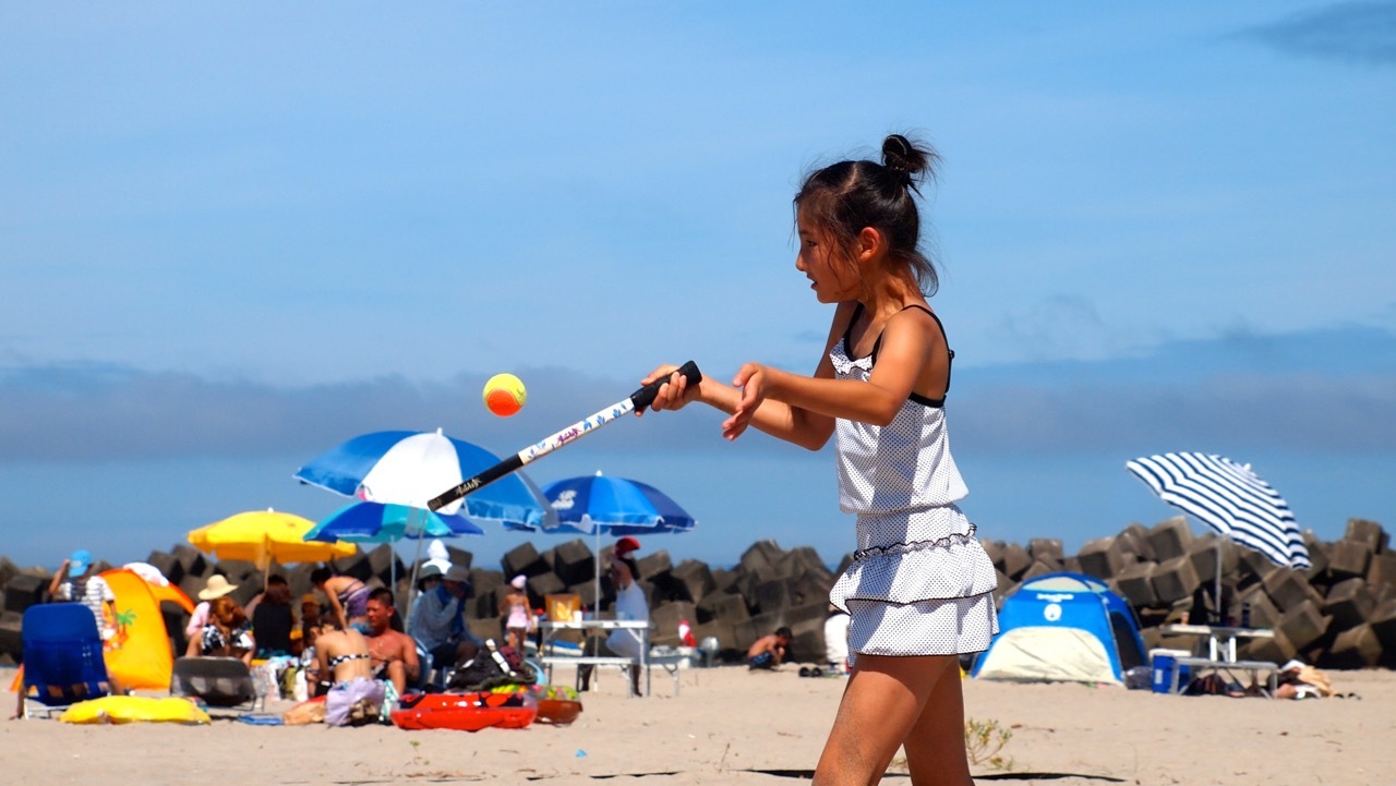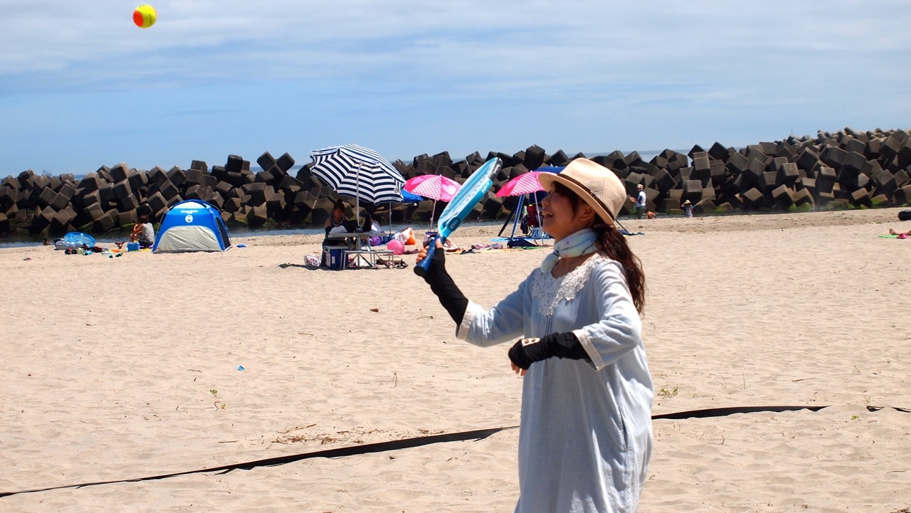 砂浜で羽子板すると思ってください。