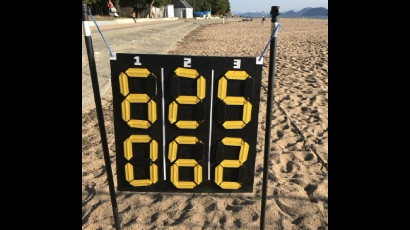 - ビーチテニスのコートは16m x 8m の長方形で、片側はそれぞれ8m×8mの正方形になります。